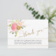 Cartões de agradecimentos funerário com elegante guião manuscrito e arranjos de aquarela de pêssego rosa e flores douradas. O modelo está preparado para você adicionar uma foto 'em memória amorosa' às costas com o nome de seu ente querido, assim como sua mensagem personalizada de obrigados na frente.