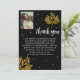 Cartões de agradecimentos Elegante de Foto de Folhagem Dourada. Comemore um marco em estilo com nosso Cartões de agradecimentos Elegante Preto e Dourado. Com um sofisticado fundo preto adornado com folhagem luxuosa de ouro, este design adiciona um toque de classe a qualquer celebração.