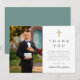 Cartões de agradecimentos Fotográfico de Primeira Comunhão do Moderno Green Cross Boy