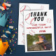 Cartão de agradecimento de aniversário de baseball com foto, mensagem de agradecimento, nome e bolas de baseball. O cartão é em esquema de cores branco, vermelho e preto. No verso do cartão estão bolas de baseball. Cartão de agradecimento com foto - adicione a foto dos seus filhos ao modelo. Personalize o cartão com nome e seu texto. Ótimo para crianças que amam baseball e esporte.