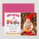 Cartão De Agradecimento Foto de Aniversário de Outono com Trator Rosa e Ab