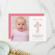 Esta foto Baptism / cartões de agradecimentos de Natal apresenta uma cruz de aquarela floral rosa com amarelos, folhas de coral e verde e folhagem. Perfeito para qualquer evento religioso: Primeira Comunhão, Batismo, Cristo ou Confirmação.