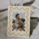 Cartões de agradecimentos de casamento caprichoso e peculiar com uma linha ondulada desenhada à volta da sua foto. Amarela.