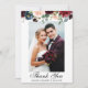 Cartão De Agradecimento Foto de Casamento Borgonha Azul Aquarela Floral