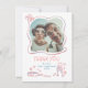 Rabiscos engraçados brancos desenhados à mão, obrigado de casamento de dois lados, você cartão com fotos em azul empoeirado e cor rosa