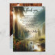 Cartões de agradecimentos de casamento com sua própria foto de casamento de um lado. Do outro lado está a pintura de uma floresta encantada numa paisagem de montanha com flores silvestres.