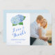 Estes cartões de agradecimento apresentam flores azul-aquarela. Personalize-o com sua própria foto de casamento, nomes e texto da data de casamento. Estes cartões de agradecimento fazem parte de uma coleção com vários itens de casamento correspondentes. Visite as páginas de coleta em nossa loja para ver o intervalo de cheios.