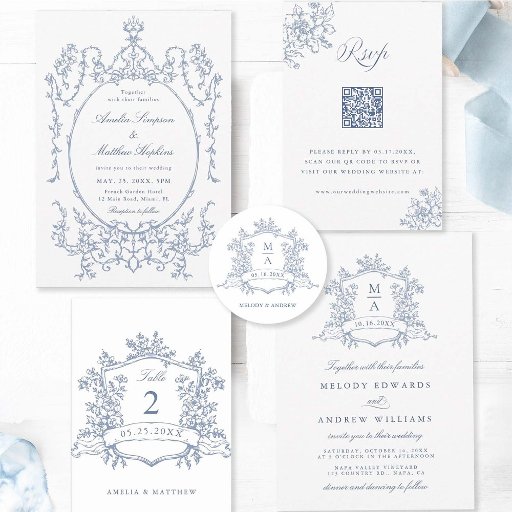 Classic Floral Garden Frame Dusty Blue Wedding Criado por Flora