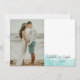 Cartões de agradecimentos romântico de casamento impresso com duas das suas fotos de casamento, uma menor de um lado e uma maior do outro lado. Sua data de casamento foi escrita em uma fonte legal com seus nomes em um roteiro de assinatura em turquesa aquarela com espaço para escrever uma nota pessoal à mão.