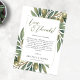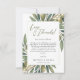 Este design apresenta o tema do casamento italiano la dolce vita com galhos verdes de cor de azeitona com folhas verdes e azeitonas com sotaque de ouro num fundo branco elegante minimalista. Personalize-o com seus detalhes de eventos e sua foto de casal favorita para torná-lo completamente seu! Disponível como convites imprimíveis e downloads instantâneos.