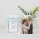 Adicione a sua foto de casamento a este obrigado de praia, para uma lembrança memorável para seus convidados. Um elegante porto litoral de madeira derivada e cortina de tule soprando na brisa apresenta flores e vinhas de magnólia pálidas, todas colocadas em uma praia arenosa com ondas de água branca. Atrás está um belo céu azul com nuvens fofinhas. O trabalho artístico original foi criado especialmente para o BarefootBride™ por © WhimsicalArtwork™ - Esta é parte de um Conjunto de Papel de Casamento com casamento, chá de fraldas e outros artigos de papelaria de eventos.