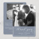 Cartão De Agradecimento Foto de Casamento Moderno Azul-Dusty, Script Elega