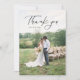 Cartão De Agradecimento Foto de Casamento Moderno de Script Simples Preto