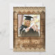 Um pano de fundo rústico, de madeira serrada e creme acentua uma das fotos do seu formando na frente e a mensagem obrigado-você na parte de trás. DICA DA FOTO: para obter os melhores/mais rápidos resultados, selecione uma foto com o assunto no meio e/ou pré-plante em forma quadrada ANTES de fazer o upload e ela preencherá o espaço de fotos perfeitamente. Entre em contato com o designer se quiser que este design seja modificado, em outro produto ou se quiser coordenar itens para a sua parte.
