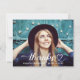 Graduação plana moderna e personalizada, obrigado cartões de nota apresentam uma foto com texto de script de Obrigados brancos (que podem ser modificados) com um sotaque cardíaco bonito. Personalize com uma foto do formando, seu nome e ano de aula. Inclui espaço na parte traseira da placa para uma nota manuscrita.