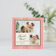 Pequenas faixas verticais vermelhas e creme de coral dão a esta duas fotos de cartões de agradecimentos de feriado uma vibração moderna e chica quando combinada com fontes clássicas em verde-floresta. O backer coordenado apresenta uma fonte personalizada de mensagem e caligrafia mais longa para uma linha de assinatura.