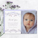 Este cartão de agradecimento de foto de aniversário de qualquer idade apresenta uma moldura floral lavanda adornada com borboletas e fitas. Para personalização avançada deste design, clique no BOTÃO FERRAMENTA DE DESIGN AZUL acima!