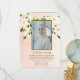 Esta design do Programa Memorial Floral apresenta uma cor d'água rosas brancas e folhagem verde sobre fundo cor-de-rosa claro de pêssego com texto elegante verde e preto. Adicione fotos em quadro verde. O reverso deste programa é cor-de-rosa claro cor-de-pêssego com flores brancas-chic, uma armação verde com serviço de ordem funerária.