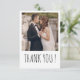 Mostre um apreço sincero aos seus convidados com este cartões de agradecimentos personalizado de casamento fotográfico com um moderno design verde eucalipto. A frente mostra sua foto favorita de casamento com a ousada tipografia "Obrigado", enquanto a parte de trás oferece uma emocionante mensagem de gratidão destacada pelo eucalipto macio e aquoso. Perfeito para temas de casamento rústicos, botânicos ou minimalistas, este cartão combina encanto pessoal com detalhes elegantes.