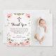Elegante Blush Rosa Rosa Rosa Floral Foto Baptism Cartões de agradecimentos