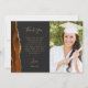 Envie a sua família e amigos um obrigado especial de graduação - você com esses cartões com fotos personalizados. À esquerda, as palavras "obrigado você" aparecem na elegante tipografia de escrita manual dourada sobre um fundo fora do preto sobre uma breve e editável mensagem de obrigados para os convidados de festa de formatura em letra de impressão, com seu nome abaixo. Uma borda agitada de cor laranja queimada, aparada com brilho de ouro falso, decora a borda esquerda. Adicione uma foto vertical à frente e uma segunda foto horizontal à parte traseira da placa.