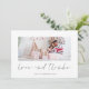 Foto moderna, amor e Obrigados de Natal. Um script de estilo manuscrito de na moda set para Amor e Obrigados e personalize com seus nomes e mensagens no verso. substitua a foto de exemplo por seu próprio favorito.