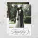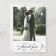 Este cartões de agradecimentos de casamento apresenta uma carta caligráfica elegante e romântica com uma foto e texto adicionais no verso. Perfeito para casamentos, aniversários, graduações e outros eventos. Para uma personalização mais avançada deste design, clique no BOTÃO FERRAMENTA DESIGN AZUL acima!