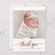 Simples Elegante Rosa de Caligrafia Moderna com Roteiro Dourado Novo Cartões de agradecimentos de Bebê de Foto. Apresenta um belo texto de "obrigado" em um script de fonte de traço com barra de caligrafia escrita à mão em folha de ouro falso-rosa (ou folha de cor-de-rosa). No lado inverso, mensagem pessoal pré-feita. Fácil de personalizar com sua foto de bebê e detalhes.