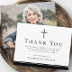 Cartões de agradecimentos de simpatia de luto elegante com cor preta ou personalizada Cristian cruzado e borda. As cores padrão são preto e branco, mas a cor do plano de fundo, a cor da borda, a cor cruzada, as fontes e as cores da fonte podem ser alteradas com a ferramenta design. Adicione uma foto personalizada atrás.