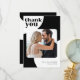 Abstrato modela o novo casamento único duas fotos personalizadas cartões de agradecimentos com sua mensagem (modelo de texto pré-impresso) e tipografia ousada em preto e branco minimalista simples. +++++ Adequado para casamentos contemporâneos na moda casuais.