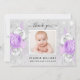 Cartão De Agradecimento Fotografia prateada dos florais roxos do batismo