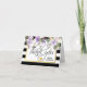 Lindos cartões de agradecimento de casamento moderno. Listras pretas e brancas com moldura em dourado falso e lavanda floral em aquarela, lilás, violeta, roxo. Letras de topografia em script. Personalize-os adicionando seus nomes com opção de foto / imagem dentro do cartão.