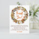 Um pouco de abóbora está a caminho! Celebre sua chá de fraldas neste outono, coroa de abóbora de outono, fofinha, com bonito camada castanha, vermelha, laranja e verde-escura, abóboras brancas e elegante tipografia caligráfica moderna sobre cartões de agradecimentos branco de fundo