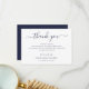 Personalize este simples cartão azul de marinho com sua mensagem e detalhes do obrigado. Design apresenta o script azul do marinho com cor de fundo complementar na parte traseira da placa. Fácil de personalizar todo o texto.