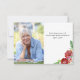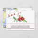 Cartões de agradecimentos funerário com guião manuscrito elegante e rosas vermelhas de aquarela. O modelo está preparado para você adicionar uma foto 'em memória amorosa' às costas com o nome de seu ente querido, assim como sua mensagem personalizada de obrigados na frente.
