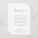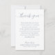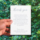 Um simples cartões de agradecimentos branco apresenta uma mensagem de exemplo em letras azuis empoeiradas quentes que você pode usar ou mudar para suas próprias palavras para agradecer as notas personalizadas para sua celebração da vida, funeral ou memorial.