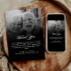 Em tempos de perda, este cartão memorial proporciona uma forma digna e sincera de transmitir a vossa gratidão a todos aqueles que ofereceram as suas condolências e apoio. A frente do cartão apresenta uma fotografia do seu ente querido, sobreposta a "In Loving Memory" em um elegante roteiro de caligrafia moderna e seu nome e expectativa de vida. A parte de trás do cartão revela uma segunda foto esbatida em preto com "Obrigado" no elegante roteiro de caligrafia moderno, seguido da sua mensagem pessoal de obrigados. O cartão foi concebido para fazer com que os destinatários se sintam reconhecidos e apreciados pela sua empatia e gestos de consolo. É um encerramento atencioso do período formal de luto, perfeito para ser enviado após uma celebração da vida, ou funeral ou serviço de memorial. Este cartões de agradecimentos não é apenas um símbolo de obrigados, é também um lembrete acalorado da pessoa que reuniu todos. Compartilhe seus obrigados mais profundos com este cartões de agradecimentos preto e branco eterno.