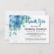Cartões de agradecimentos funerário moderno com flores azuis de cor d'água e modelo de apreciação personalizada.