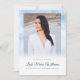 Este incrível cartões de agradecimentos memorial moderno apresenta uma grande foto na frente com um fundo azul, creme e branco turvo. O fundo é uma angélica como o tom e o texto brancos. A parte traseira apresenta uma colagem de 6 fotos. O fundo tem um obrigado sincero que você manda.
