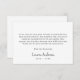 Expresse sua sincera gratidão durante um tempo desafiador com nosso Cartões de agradecimentos Funeral Simples, Típico Branco e Preto. Esta design saborosa e refinada é a forma perfeita de reconhecer a bondade e o apoio dos amigos e da família enquanto você honra a memória de um ente querido. Design minimalista: o layout limpo e desajeitado do cartão incorpora uma estética moderna e sofisticada. Amplo espaço branco e um simples esquema preto e branco criam uma atmosfera visualmente atraente e respeitosa. Tipografia Elegante: Uma mistura harmoniosa de fontes clássicas e contemporâneas garante que o texto seja atraente visualmente e fácil de ler. Personalize os campos de texto para incluir o nome do seu ente querido, um obrigado sincero que você envia e quaisquer detalhes adicionais que você deseja compartilhar. Personalização amigável: nossa interface intuitiva de design permite que você personalize o cartão de forma rápida e sem esforço, criando um tributo único e sincero ao seu amado. Mostre seu apreço pelo apoio e simpatia dos amigos e da família com nosso Cartões de agradecimentos Funeral Simples e Preto Moderno e Branco. Sua design saborosa e seus recursos pensativos fazem dela uma escolha excepcional para reconhecer a bondade durante um período difícil. Ordene hoje que experimente a qualidade e o cuidado colocados em todos os detalhes deste cartão elegante.