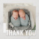 Bebês presentes gêmeos Obrigado Chá de fraldas recém-nascido Obrigado Cartões apresenta sua foto favorita com o texto "Obrigado" em um elegante roteiro branco moderno na frente e uma foto adicional e sua mensagem personalizada no verso. Personalize editando o texto nas caixas de texto fornecidas. DICA FOTO: centralize sua foto antes de carregá-la no Zazzle para obter melhores resultados. Elaborado por ©Evco Studio https://www.zazzle.com/store/evcostudio