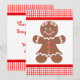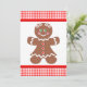 Envie um obrigado de coração para você nesta temporada de férias com este cartão com uma garota feliz de pão de gengibre vestindo arcos e três botões vermelhos em seu vestido. O cartão tem uma borda vermelha de gingham. O texto de trás diz: "Obrigado por ser tão doce!" Personalize com sua assinatura.