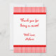 Cartão De Agradecimento Gingham Red Gingham
