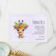Cartões de agradecimentos com uma ilustração de aquarela branca com uma face de girafa vestindo uma coroa primavera bonito floral. Colorida e fofa.