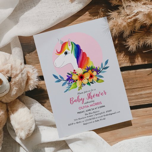 Cartão De Agradecimento Girls Modern Rainbow Unicorn Flowers Chá de fralda
