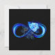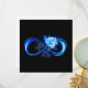 Luminous infinity symbol with glowing, beautiful, lushly blooming rose made of blue flames on black background.