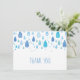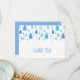 Cartão de agradecimento de gotas de chuva azuis, apresentando gotas de chuva com padrões fofos com a sua mensagem de agradecimento definida em um texto azul suave e elegante. Você pode personalizar com a sua própria mensagem de agradecimento no verso, uma maneira perfeita de dizer obrigado! Criado por Thisisnotme©