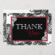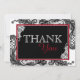 Lace preto elegante sobre fundo branco e rendas brancas sobre fundo preto com monograma vermelho e preto e cartões de agradecimentos moderno de contraste branco.