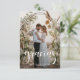 Moderno, cartões de agradecimentos de casamento espanhol. Design apresenta fotos, legendas de script de tipografia em letras brancas, nomes, data de casamento na frente. Personalize ainda mais com sua mensagem e outra foto no verso.
