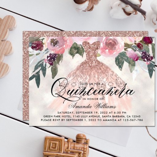 Cartão De Agradecimento Gracias Rosa Dourada Glitter Floral Quinceañera